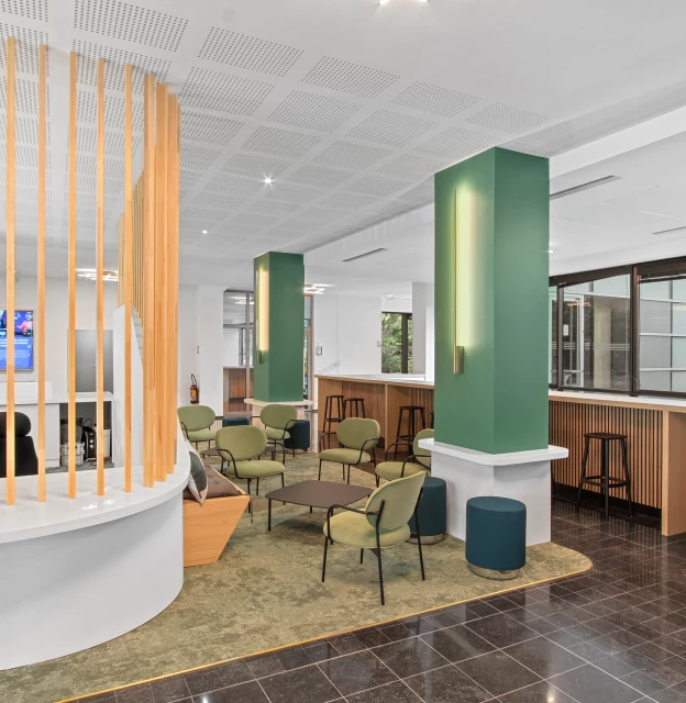 Nous sélectionnons des matériaux biosourcés et recyclés, intégrons des solutions technologiques innovantes et créons des espaces favorisant la qualité de vie et des conditions de travail (QVCT).