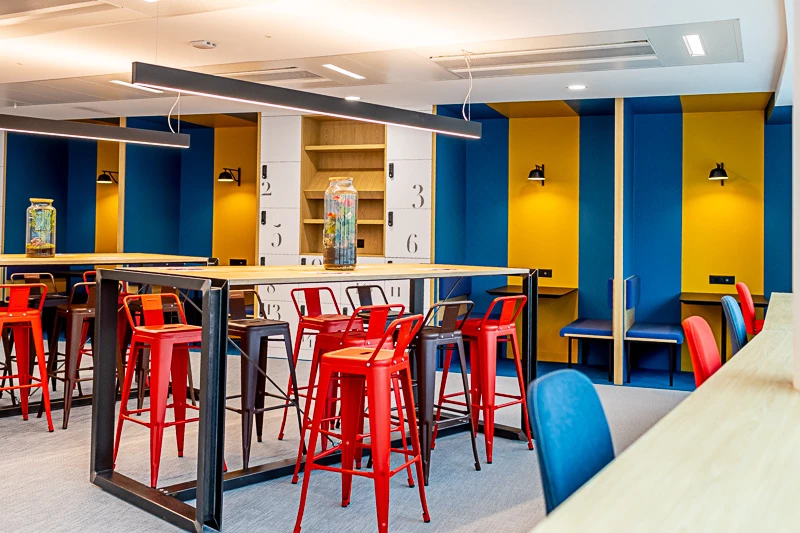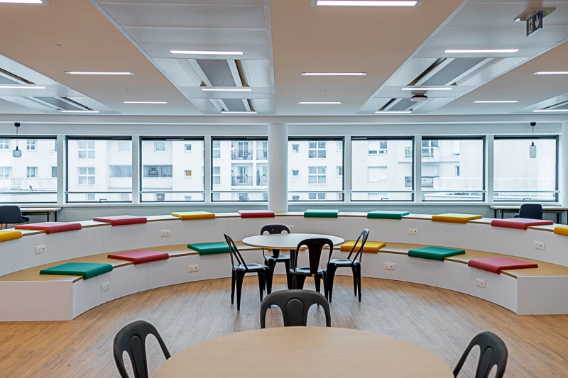 L’aménagement en flex office intègre espaces partagés, Agora conviviale, salles de réunion et box de travail, pour un cadre moderne, fonctionnel et ouvert.