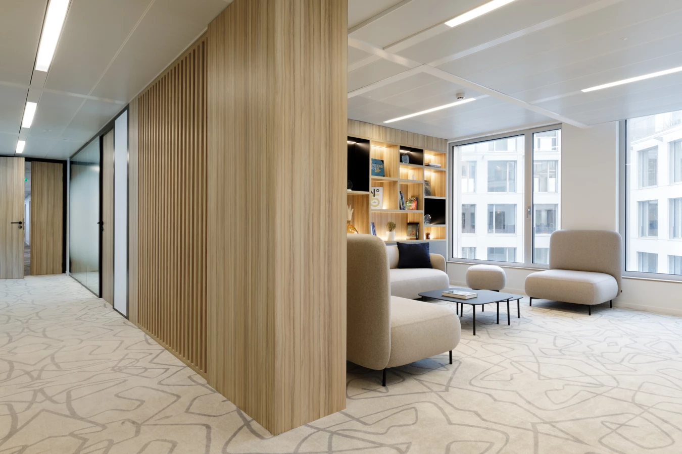 Choix de matériaux différenciants, moquette sur-mesure issue d’un dessin d’artiste, espace détente avec billard et jeux vidéo, mobilier design : tout a été pensé pour refléter l’esprit collectif et l’énergie de l’équipe.