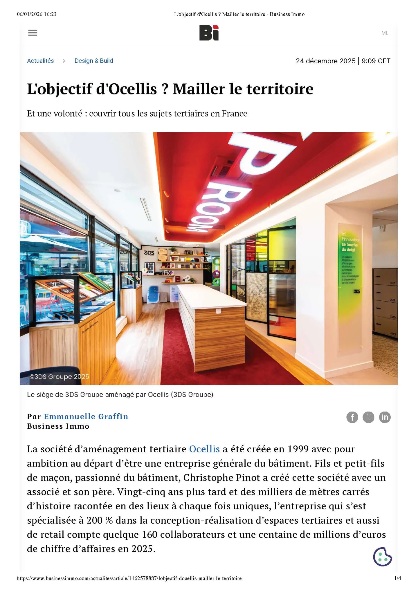 Business Immo consacre un article à OCELLIS Groupe, à travers une interview de Christophe PINOT, fondateur et président du groupe.